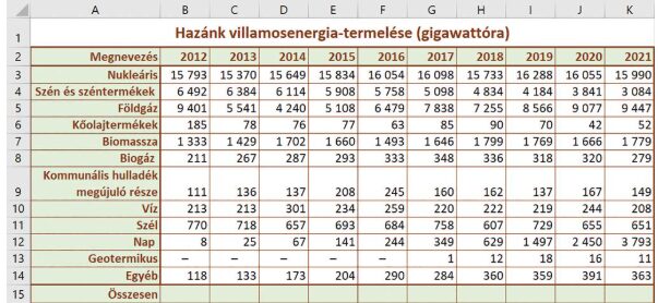 21. A táblázatkezelés alapfogalmai - órai munka letöltése